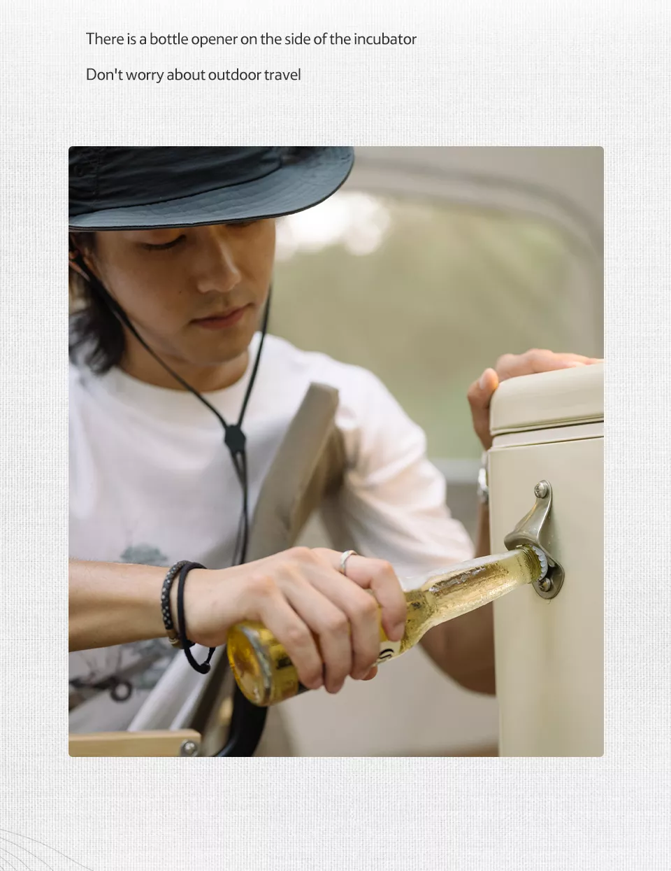 Incubator with bottle opening device on one side.
